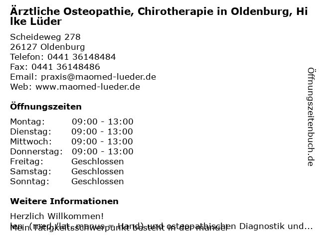 Branchen & Suchbegriffe zu Ärztliche Osteopathie, Chirotherapie in Oldenburg, Hilke Lüder:chiropraktik, chirotherapie, hilke, lüder, osteopathie, ärztliche |