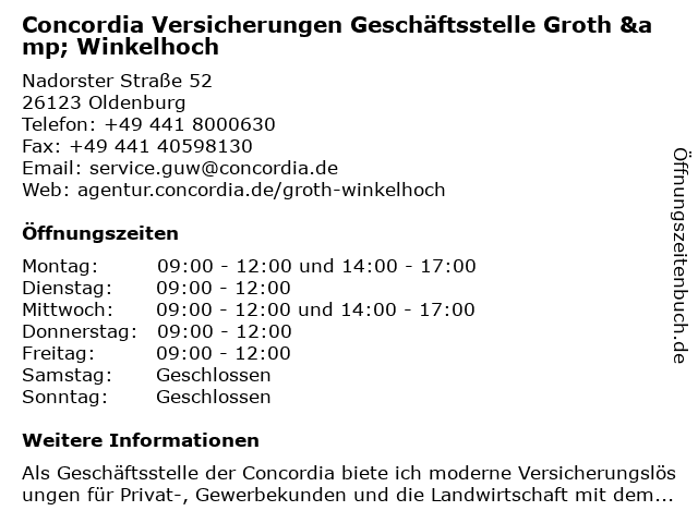 Branchen & Suchbegriffe zu Concordia Versicherungen Geschäftsstelle Groth & Winkelhoch:altersversorgung, basis rente, beihilfeversicherung, concordia, geschäftsstelle, gewerbliche versicherungen, groth, haftpflicht, hausrat, jagdhaftpflicht, landwirtschaftliche versicherungen, naturgefahren, oldtimer versicherung, private krankenversicherung, schäden durch wolfsbiss, tierkrankenversicherung, unfallversicherung, versicherung aller fahrzeuge, versicherungen, versicherungsagentur, winkelhoch, wohngebäude, zahnzusatzversicherung, ökologische altersversorgung |