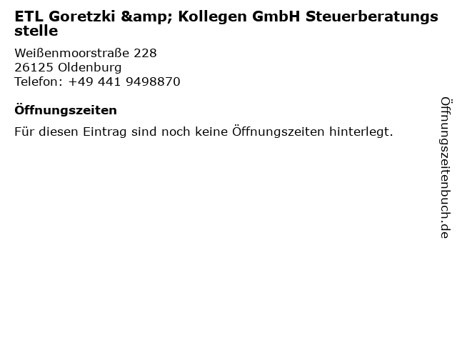 ETL Goretzki & Kollegen GmbH Steuerberatungsstelle anrufen | |