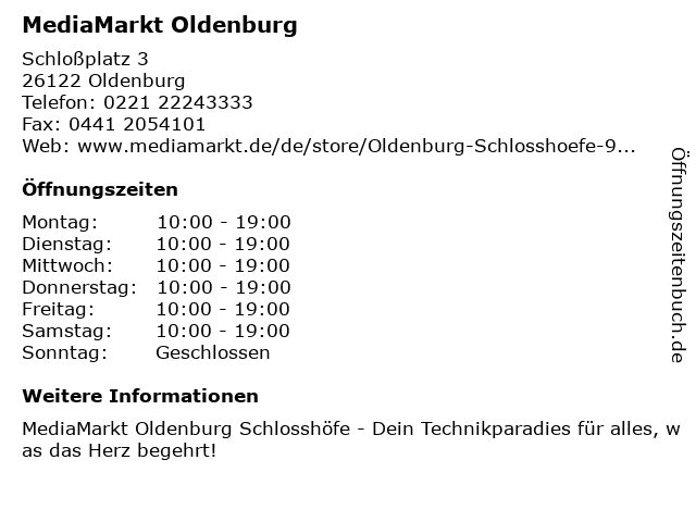 Öffnungszeiten MediaMarkt Oldenburg in Oldenburg anzeigen | |