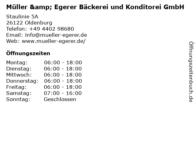 2 Müller & Egerer Bäckerei und Konditorei GmbH (Entfernung: 0,26 km) Heiligengeiststraße 26, 26121 Oldenburg 3 Müller & Egerer Bäckerei und Konditorei GmbH (Entfernung: 0,61 km) Willy-Brandt-Platz , 26122 Oldenburg 5 Müller & Egerer Bäckerei und Konditorei GmbH (Entfernung: 2,74 km) Donnerschweer Straße 325, 26123 Oldenburg 6 Müller & Egerer Bäckerei und Konditorei GmbH (Entfernung: 4,43 km) Alter Postweg 125, 26133 Oldenburg |