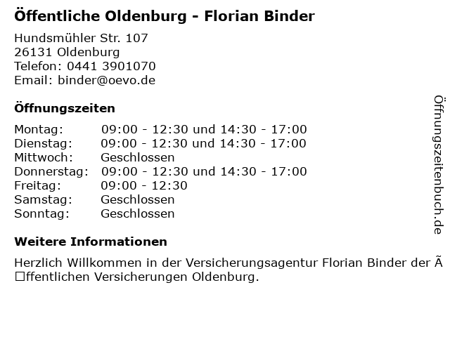 Branchen & Suchbegriffe zu Öffentliche Oldenburg - Florian Binder:binder, florian, öffentliche |