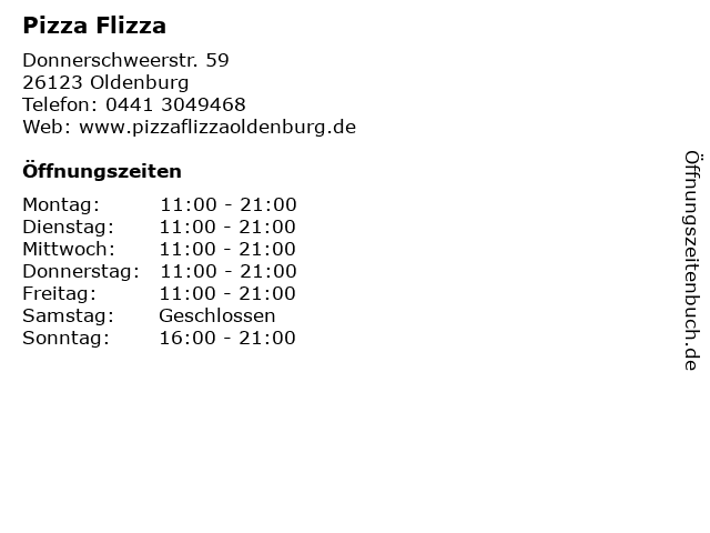 | Öffnungszeiten Pizza Flizza in Oldenburg anzeigen | |