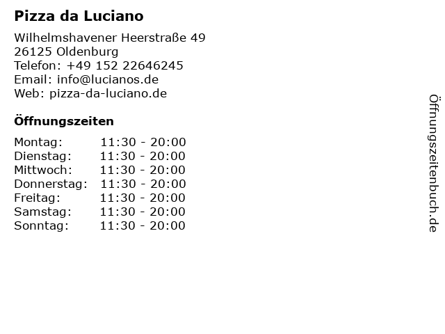 | Öffnungszeiten Pizza da Luciano in Oldenburg anzeigen | |