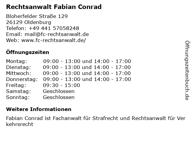 Branchen & Suchbegriffe zu Rechtsanwalt Fabian Conrad:conrad, fabian, fachanwalt strafrecht, rechtsanwalt, rechtsanwalt strafrecht, rechtsanwalt verkehrsrecht, strafrecht, verkehrsrecht |