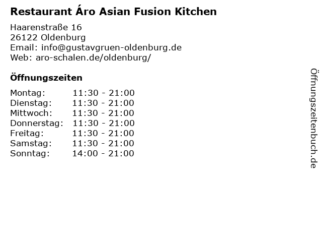 | Öffnungszeiten Restaurant Áro Asian Fusion Kitchen in Oldenburg anzeigen | |