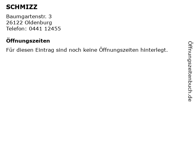 | Öffnungszeiten SCHMIZZ in Oldenburg anzeigen | |