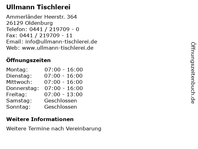 | Öffnungszeiten Ullmann Tischlerei in Oldenburg anzeigen | |