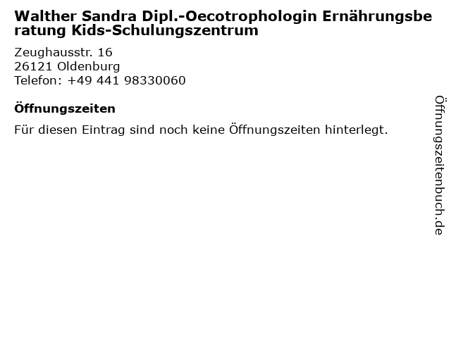 | Walther Sandra Dipl.-Oecotrophologin Ernährungsberatung Kids-Schulungszentrum anrufen | |