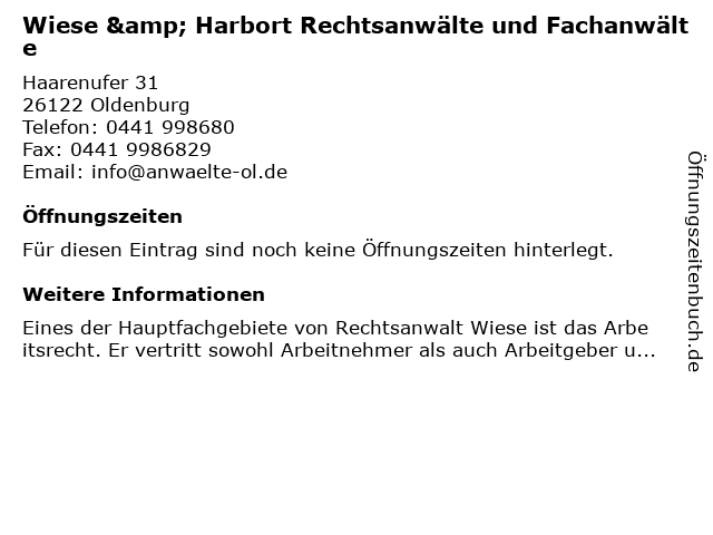 Branchen & Suchbegriffe zu Wiese & Harbort Rechtsanwälte und Fachanwälte:fachanwälte, harbort, rechtsanwälte, wiese |