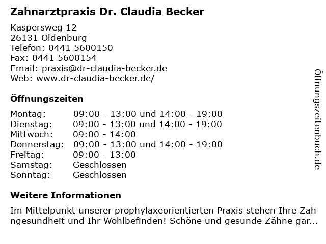 Branchen & Suchbegriffe zu Zahnarztpraxis Dr. Claudia Becker:becker, claudia, dr., zahnarztpraxis |