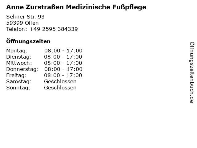 Branchen & Suchbegriffe zu Anne Zurstraßen Medizinische Fußpflege:anne, fußpflege, medizinische, zurstraßen |