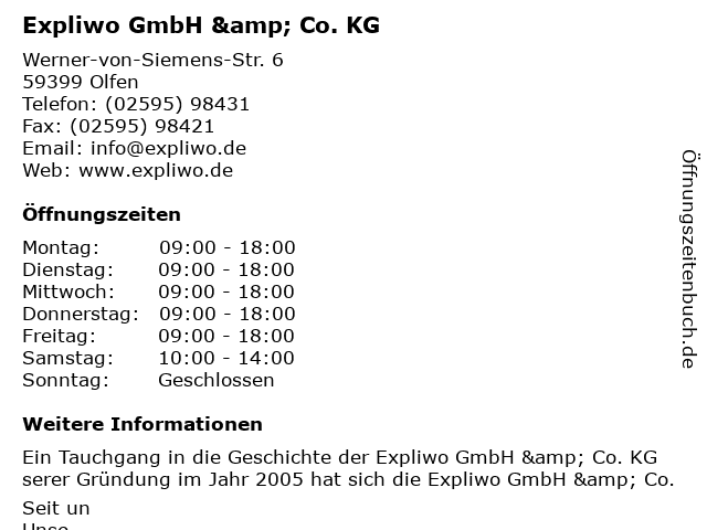 | Öffnungszeiten Expliwo GmbH & Co. KG in Olfen anzeigen | |