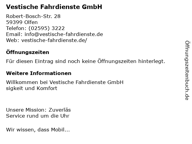 Öffnungszeiten Vestische Fahrdienste GmbH in Olfen anzeigen | |