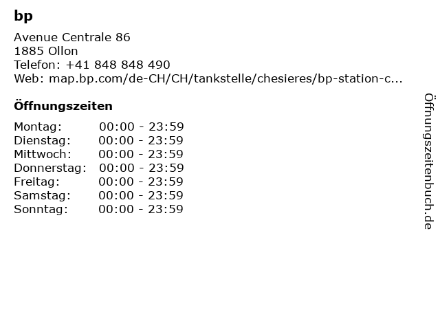 | Öffnungszeiten bp in Ollon anzeigen | |