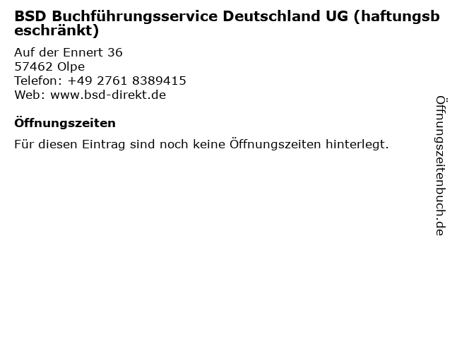 | BSD Buchführungsservice Deutschland UG (haftungsbeschränkt) anrufen | |