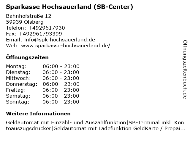 | Sparkasse Mitten im Sauerland (SB-Center) anrufen | |