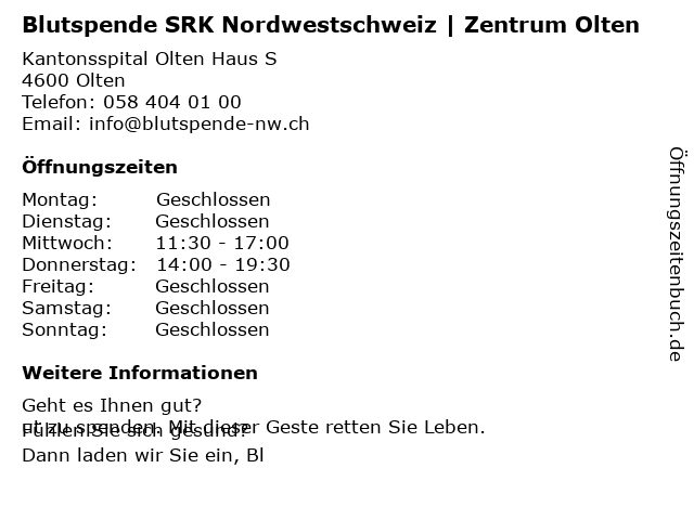 Branchen & Suchbegriffe zu Blutspende SRK Nordwestschweiz | Zentrum Olten:blutspende, krankenhäuser, nordwestschweiz, olten, srk, zentrum |
