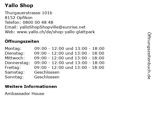 | Öffnungszeiten Yallo Shop in Opfikon anzeigen | |