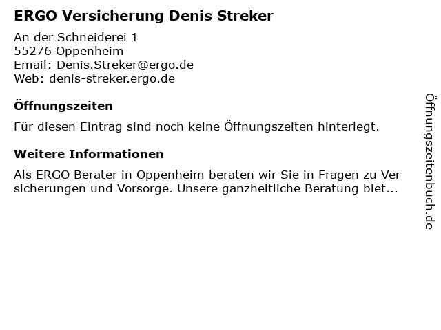 | Öffnungszeiten ERGO Versicherung Denis Streker in Oppenheim anzeigen | |