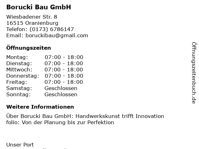 Öffnungszeiten Borucki Bau GmbH in Oranienburg anzeigen | |