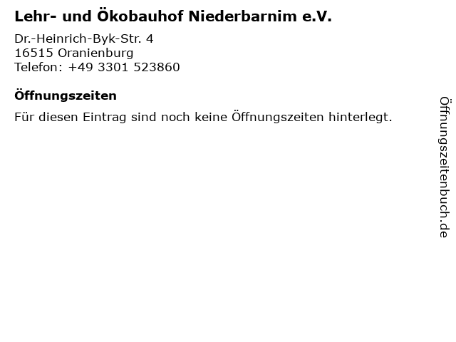 | Lehr- und Ökobauhof Niederbarnim e.V. anrufen | |