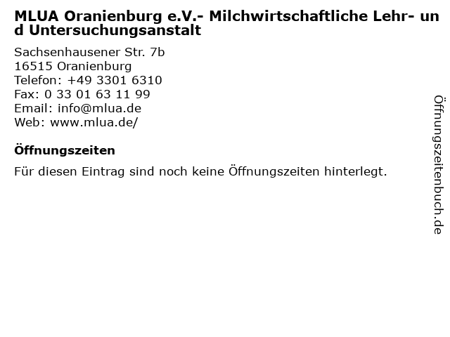| MLUA Oranienburg e.V.- Milchwirtschaftliche Lehr- und Untersuchungsanstalt anrufen | |