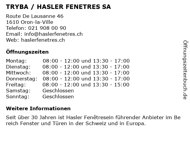 Branchen & Suchbegriffe zu TRYBA / HASLER FENETRES SA:anbieter für türen, fenetres, hasler, sa, schreiner, tryba |