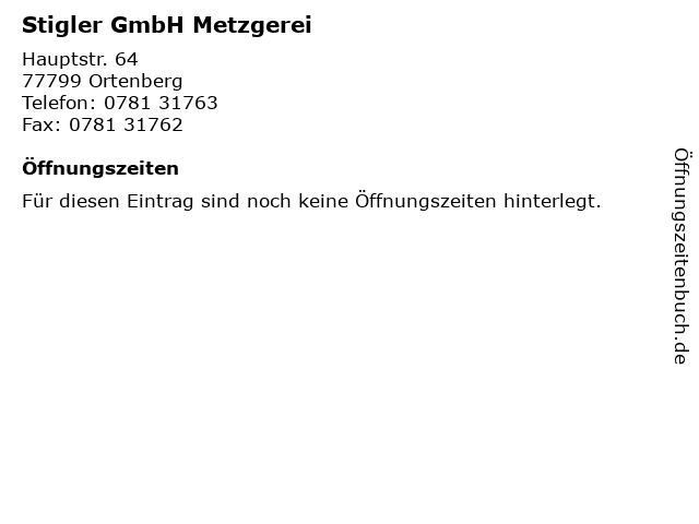 | Öffnungszeiten Stigler GmbH Metzgerei in Ortenberg anzeigen | |