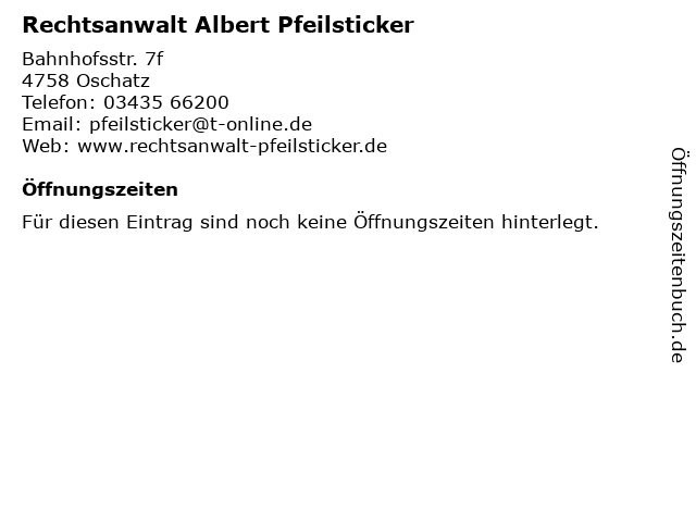 | Rechtsanwalt Albert Pfeilsticker anrufen | |