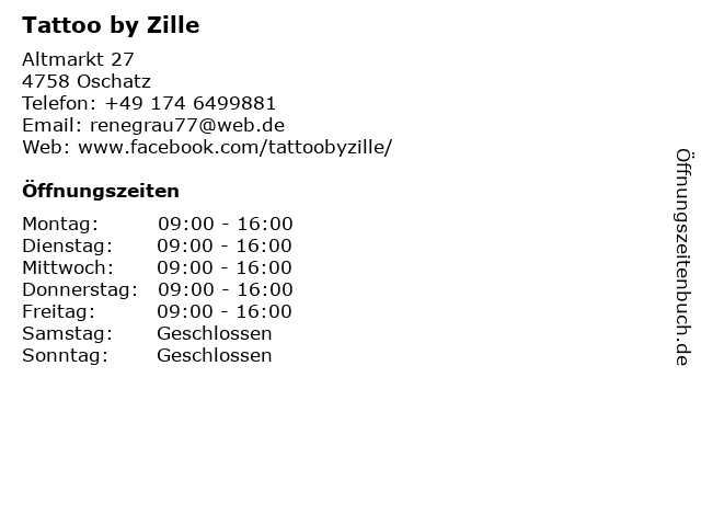 | Öffnungszeiten Tattoo by Zille in Oschatz anzeigen | |