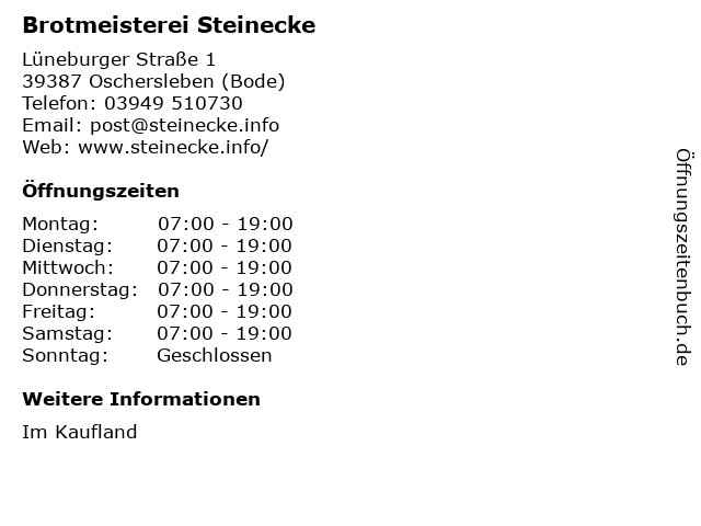 Öffnungszeiten Brotmeisterei Steinecke in Oschersleben (Bode) anzeigen