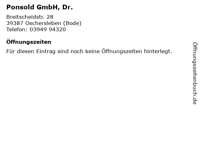 | Öffnungszeiten Ponsold GmbH, Dr. in Oschersleben (Bode) anzeigen | |