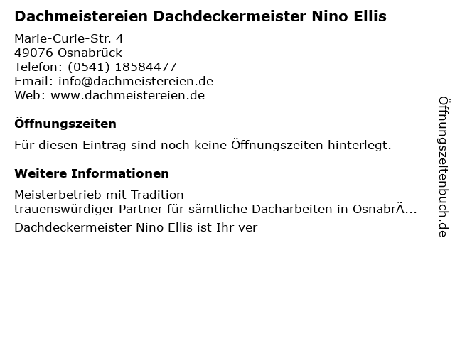 | Dachmeistereien Dachdeckermeister Nino Ellis anrufen | |