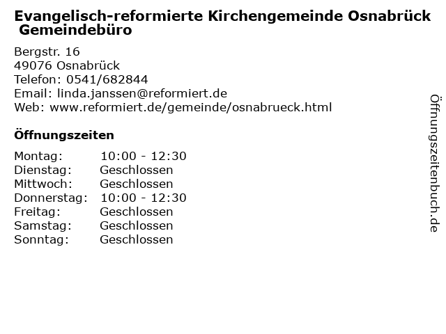Branchen & Suchbegriffe zu Evangelisch-reformierte Kirchengemeinde Osnabrück Gemeindebüro:evangelisch, gemeinde, gemeindebüro, gottesdienst, kirche, kirchengemeinde, pfarrer, reformierte, samtgemeinde |