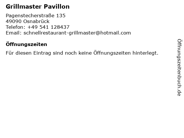 | Öffnungszeiten Grillmaster Pavillon in Osnabrück anzeigen | |