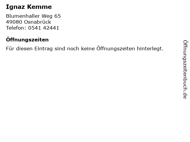 | Öffnungszeiten Ignaz Kemme in Osnabrück anzeigen | |