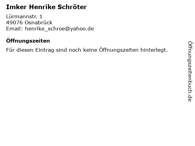 | Öffnungszeiten Imker Henrike Schröter in Osnabrück anzeigen | |