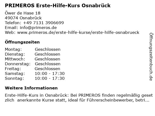 Branchen & Suchbegriffe zu PRIMEROS Erste-Hilfe-Kurs Osnabrück:erste, erste hilfe am unfallort, erste hilfe kurs, erste-hilfe, erste-hilfe-kurs, führerschein sehtest, herz-lungen-wiederbelebung, herzinfarkt, hilfe, kurs, primeros, schlaganfall, stabile seitenlage, verbandmaterial, weiterbildung |