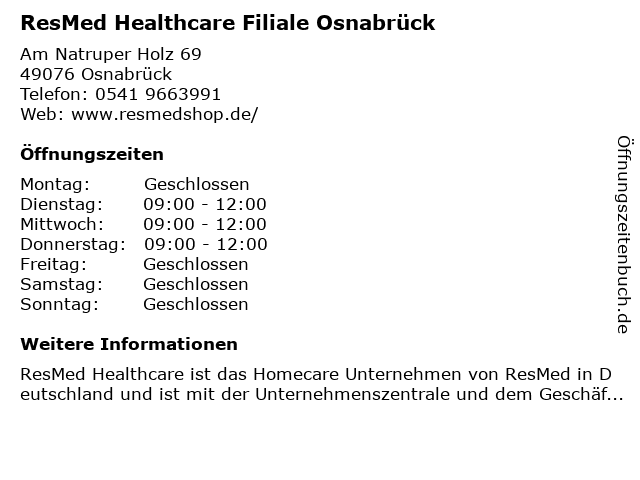 Branchen & Suchbegriffe zu ResMed Healthcare Filiale Osnabrück:healthcare, resmed, schlafapnoe |