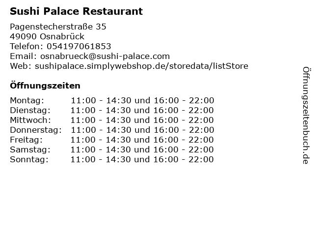 | Öffnungszeiten Sushi Palace Restaurant in Osnabrück anzeigen | |