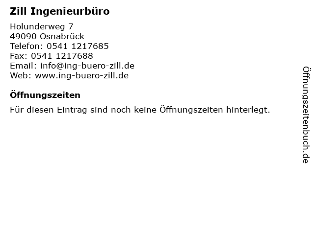 | Öffnungszeiten Zill Ingenieurbüro in Osnabrück anzeigen | |
