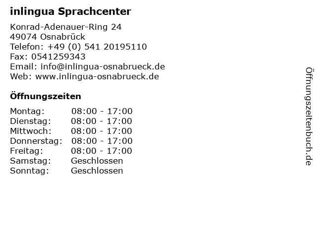 | Öffnungszeiten inlingua Sprachcenter in Osnabrück anzeigen | |