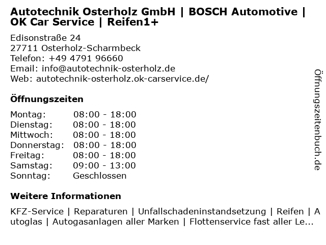 Branchen & Suchbegriffe zu Autotechnik Osterholz GmbH | BOSCH Automotive | OK Car Service | Reifen1+:achsvermessung, auto ohz, automotive, autoreparatur, autoservice, autotechnik, autowerkstatt, autowerkstatt osterholz, bosch, car, diagnose und reparatur, inspektion, junited autoglas osterholz ohz, kfz ohz, kfz service, kfz werkstatt, klimaservice, mercedes werkstatt osterholz ohz, ok, osterholz, reifen, reifen1+, service, standheizung, unfallreparatur, webasto, wohnmobile |