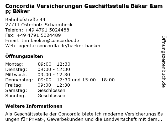 Branchen & Suchbegriffe zu Concordia Versicherungen Geschäftsstelle Bäker & Bäker:bäker, concordia, finanzierungen, geschäftsstelle, versicherungen, versicherungsagentur |