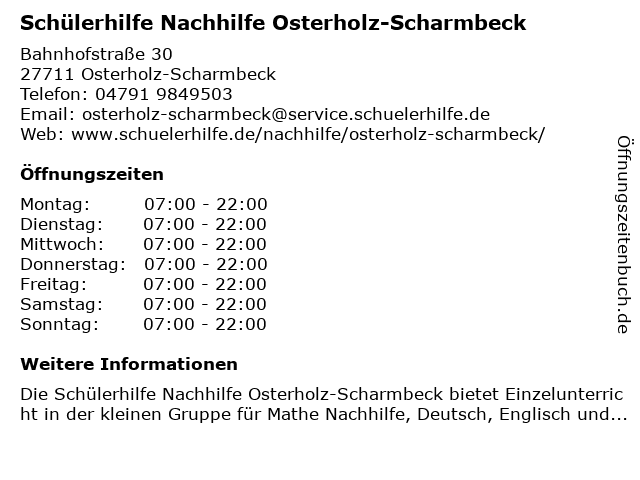 Branchen & Suchbegriffe zu Schülerhilfe Nachhilfe Osterholz-Scharmbeck:bildungszentrum, nachhilfe, osterholz, scharmbeck, schülerhilfe |