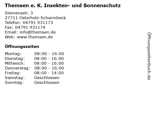 Branchen & Suchbegriffe zu Themsen e. K. Insekten- und Sonnenschutz:e., insekten, k., sonnenschutz, themsen |
