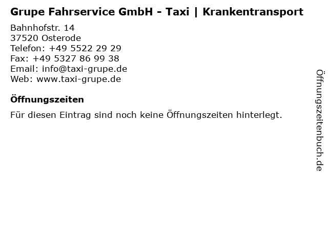 | Grupe Fahrservice GmbH - Taxi | Krankentransport anrufen | |