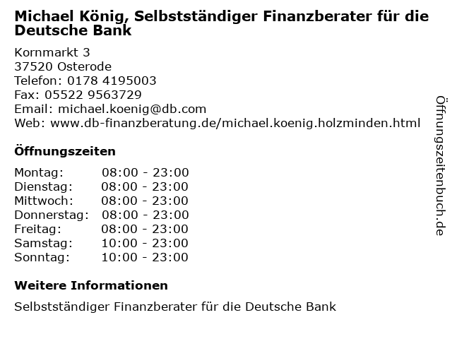Branchen & Suchbegriffe zu Michael König, Selbstständiger Finanzberater für die Deutsche Bank:bank, deutsche, finanzberater, könig, michael, selbstständiger |