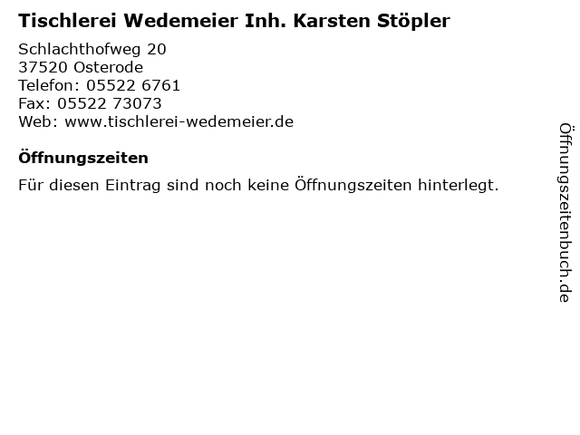 | Tischlerei Wedemeier Inh. Karsten Stöpler anrufen | |